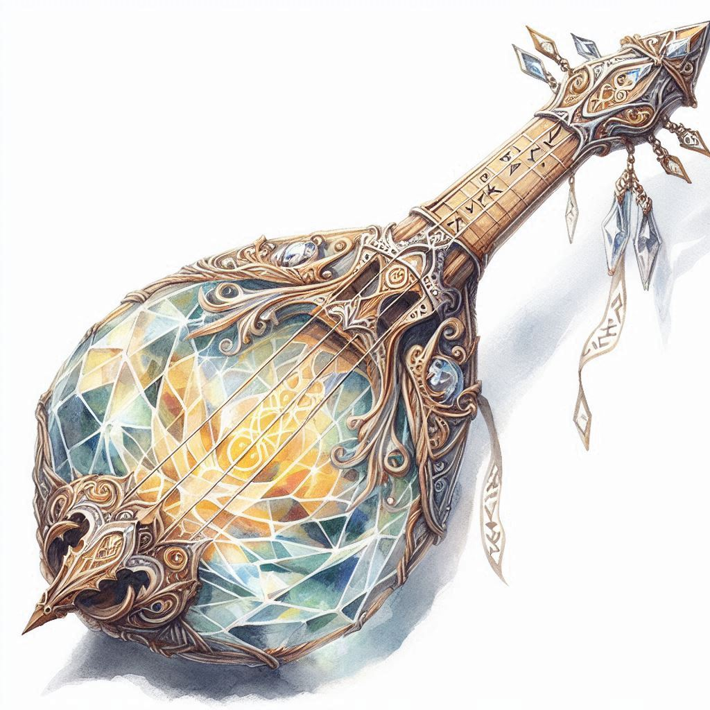 This lute is the Soothsinger, a treasure of the former arch fey of the domain of Joquiet. Its body is made of pure, transparent crystal, and it has the word “Truth” carved into the neck.